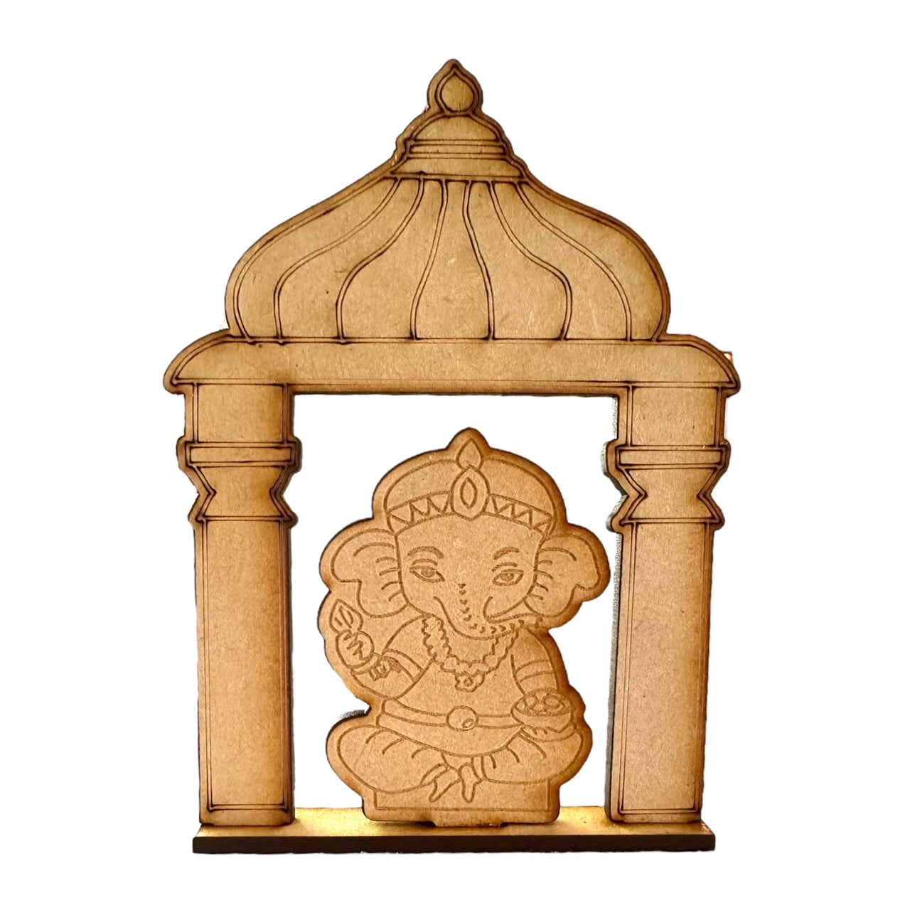 Bring Ganeshji to life with our DIY coloring kit! This laser-cut wooden mandap features a detailed Ganesh outline for kids to color. Perfect for Ganesh Puja and other celebrations. Each kit is unique due to natural wood variations. Colors not included.